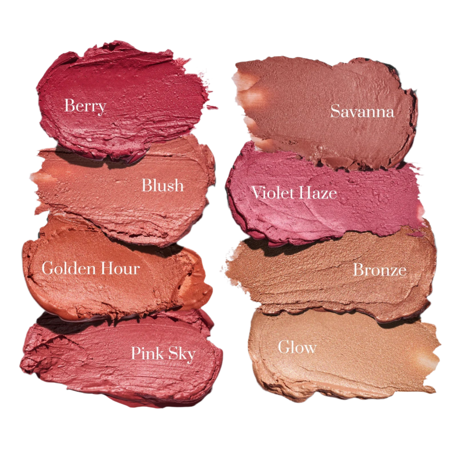 Golden Hour: Jojoba Esters, C26-28 Dimethicone, Mica, Butyloctyl Salicylate, Squalane, C18-36 Triglyceride, Synthetic Fluorphlogopite, Polymethylsilsesquioxane, Glyceryl Dibehenate, C12-15 Alkyl Benzoate, Tridecyl Salicylate, Euphorbia Cerifera (Candelilla) Wax, VP/Eicosene Copolymer, Alumina, Methlypropanediol, Lecithin, Tribehenin, Dimethiconol/Propylsilsesquioxane/Silicate Crosspolymer, Copernicia Cerifera (Carnauba) Wax, Glyceryl Behenate, Caprylyl Glycol, Physalis Angulata Extract, Caprylic/Capric Triglyceride, Bisabolol, Tocopheryl Acetate, Phenylpropanol, Polyglyceryl-4 Diisostearate/Polyhydroxystearate/Sebacate, Dimethylmethoxy Chromanol, Aluminum Hydroxide, Hydrogenated Lecithin, Tin Oxide, Tocopherol, Iron Oxides (CI 77491), Titanium Dioxide (CI 77891).